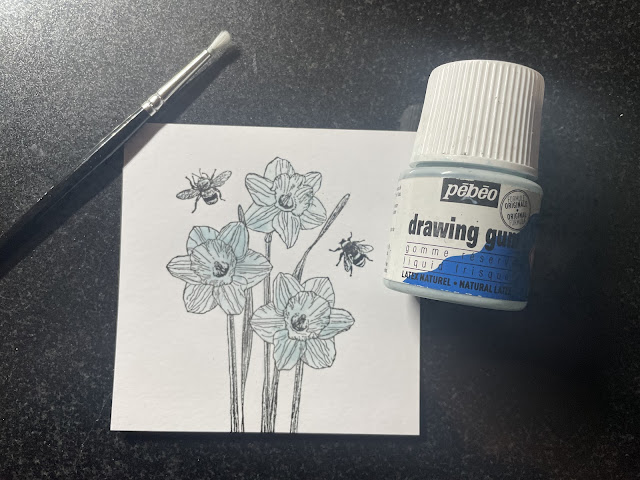 Dab the card into watery ink. Once covered dry with a heat gun and pick some more ink up. This has to be my favourite technique for creating under the sea scenes.